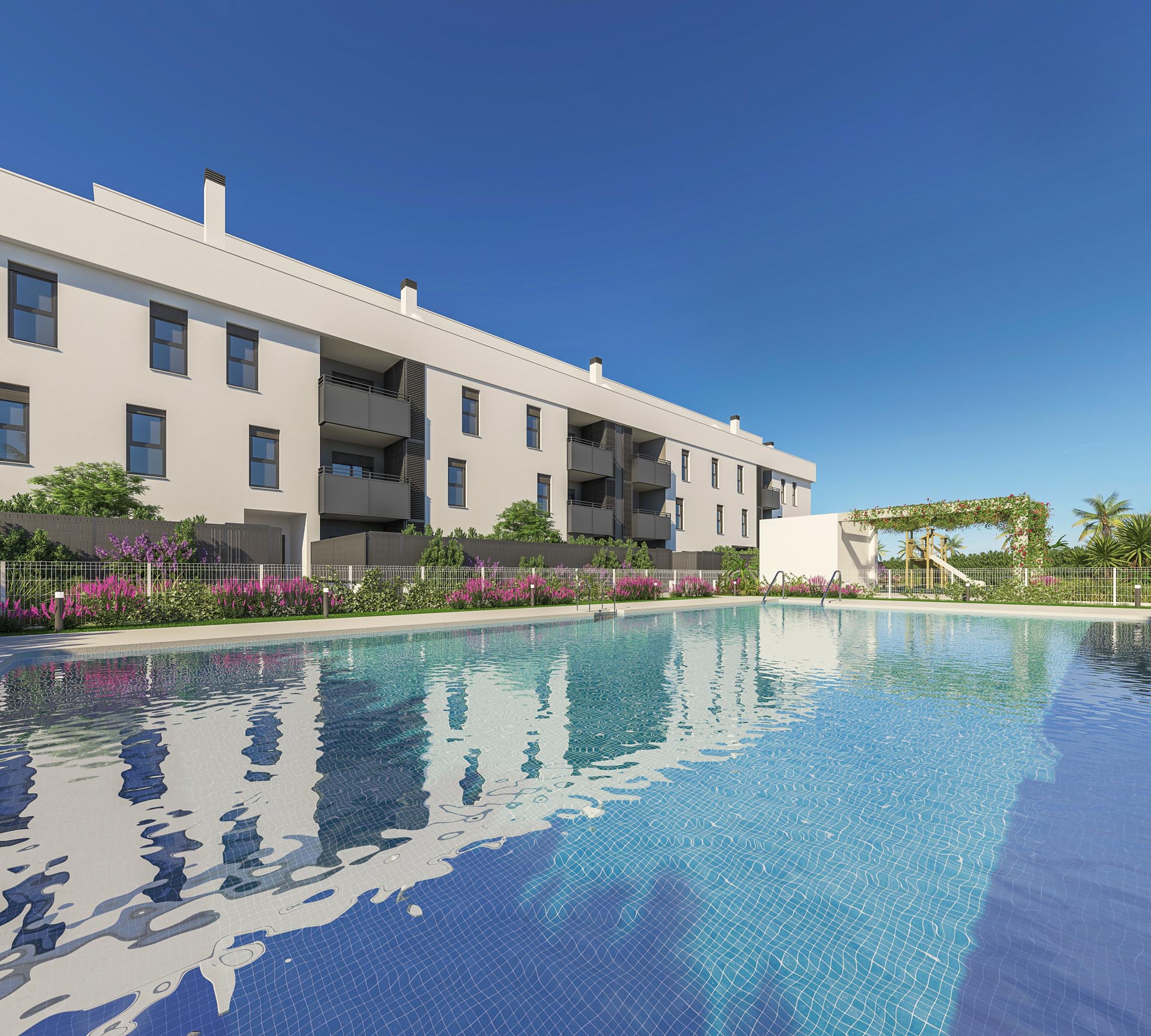 Viviendas de 1, 2 y 3 dormitorios, con bajos con jardín privado, amplias terrazas y áticos exclusivos. Espacios luminosos, materiales seleccionados con mimo y un diseño actual que prioriza el confort en cada detalle.